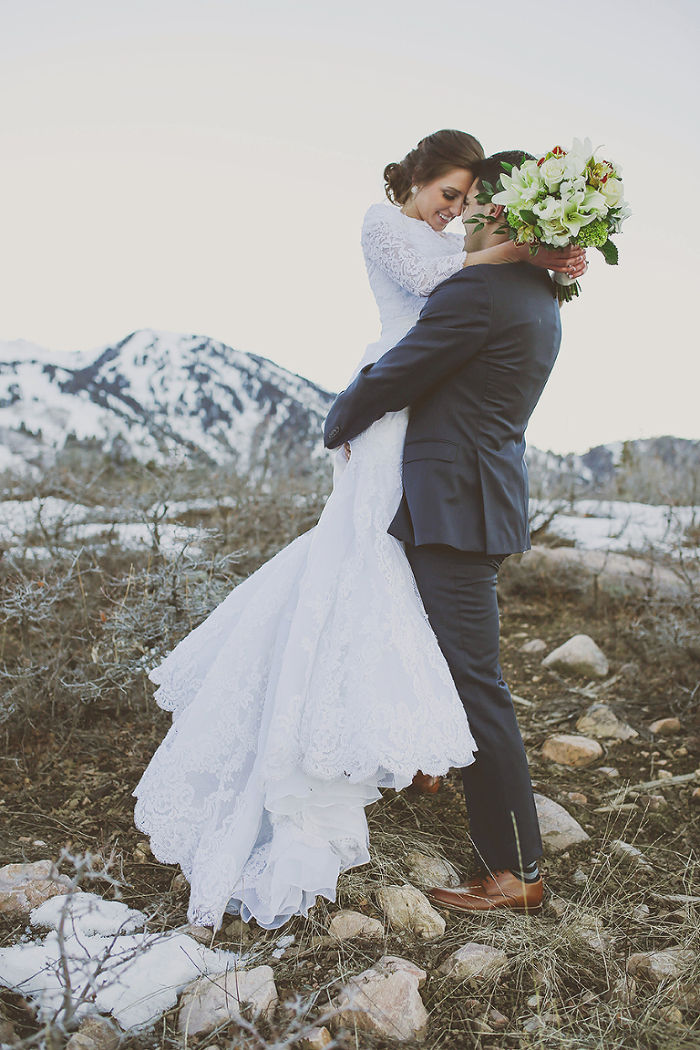 Josh & Kenlee.. These two were such good sports for these winter bridals up at snow basin.  The bride F R O Z E her little fingers to the bone, but I think all of these romantic shots make up for it.  The Bride looked beautiful..as always.   The 3/4 quarter sleeves and lace overlay on her dress (Bridal Brilliance) were the perfect look for this time of year.. and lets not forget the grooms plaid tie and striped socks.. For Real!! Loved the whole vibe.  Can’t wait for them to the the knot in march. X o X o