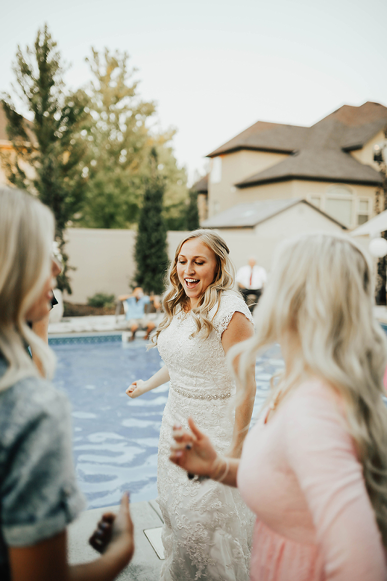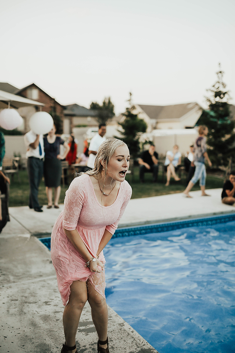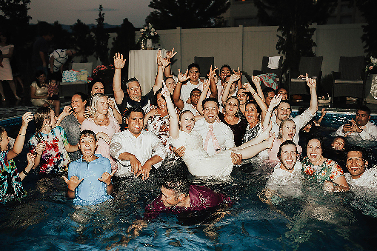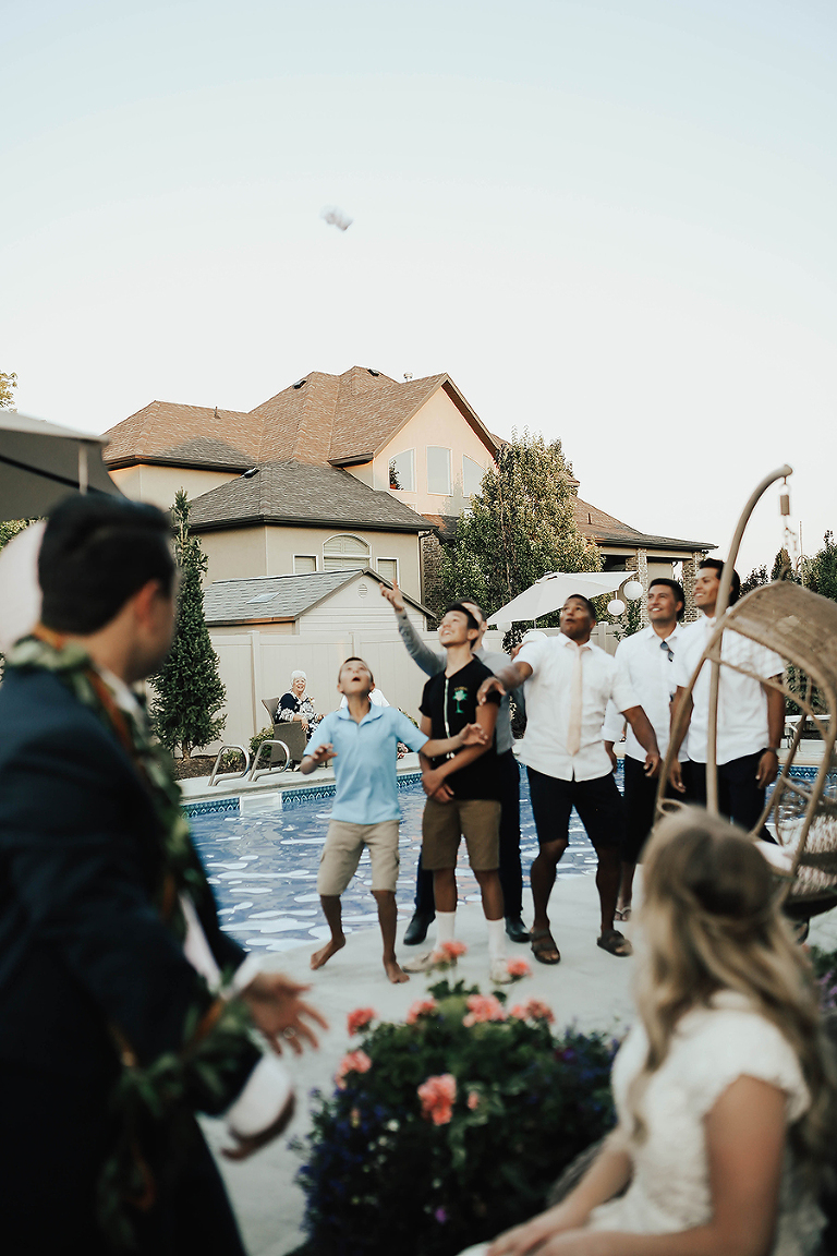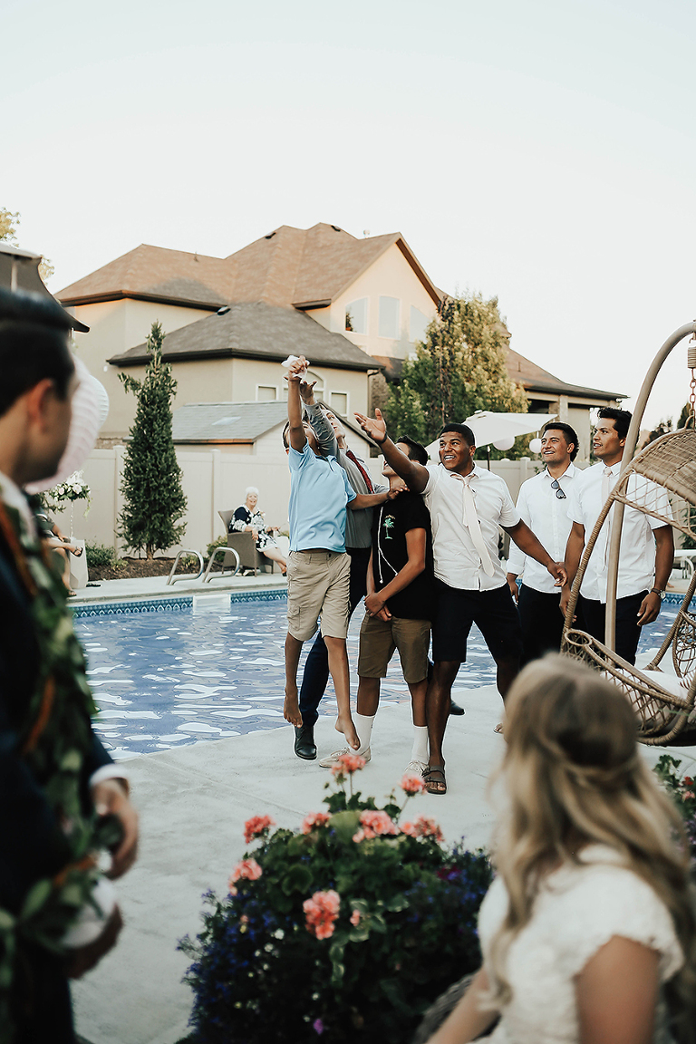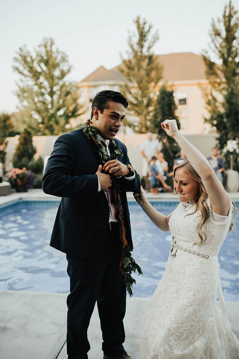 Where do I even begin with this wedding. I think my face hurt from smiling so much this whole day. Matt & Ashley were married at the Ogden, Utah LDS temple and had a beautiful intimate backyard-turned pool PARTAY reception in their hometown of Syracuse, Utah. This was by far the hottest wedding of 2017. It was literally 105 degrees at the temple ceremony and by the time we got to the reception all the groomsmen had changed into board shorts and short sleeve shirts instead of their full suit attire. The whole night you could tell everyone was itching to get the party started and COOL off. Everyone contained themselves for ALMOST the whole night, but once the dance party started everyone people started getting wet. The grooms mom was one of the first to take the plunge. Seriously it was such a fun memorable night. I LOVE being a Utah Wedding Photographer. What a perfect way to start an amazing life together. So happy I could capture it all. Congrats to the Kalamakea’s!! Scroll for ALL the fun..