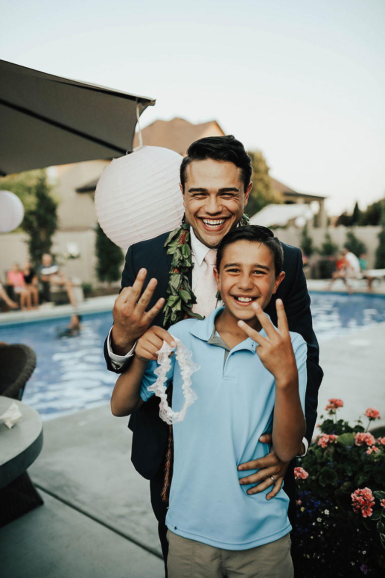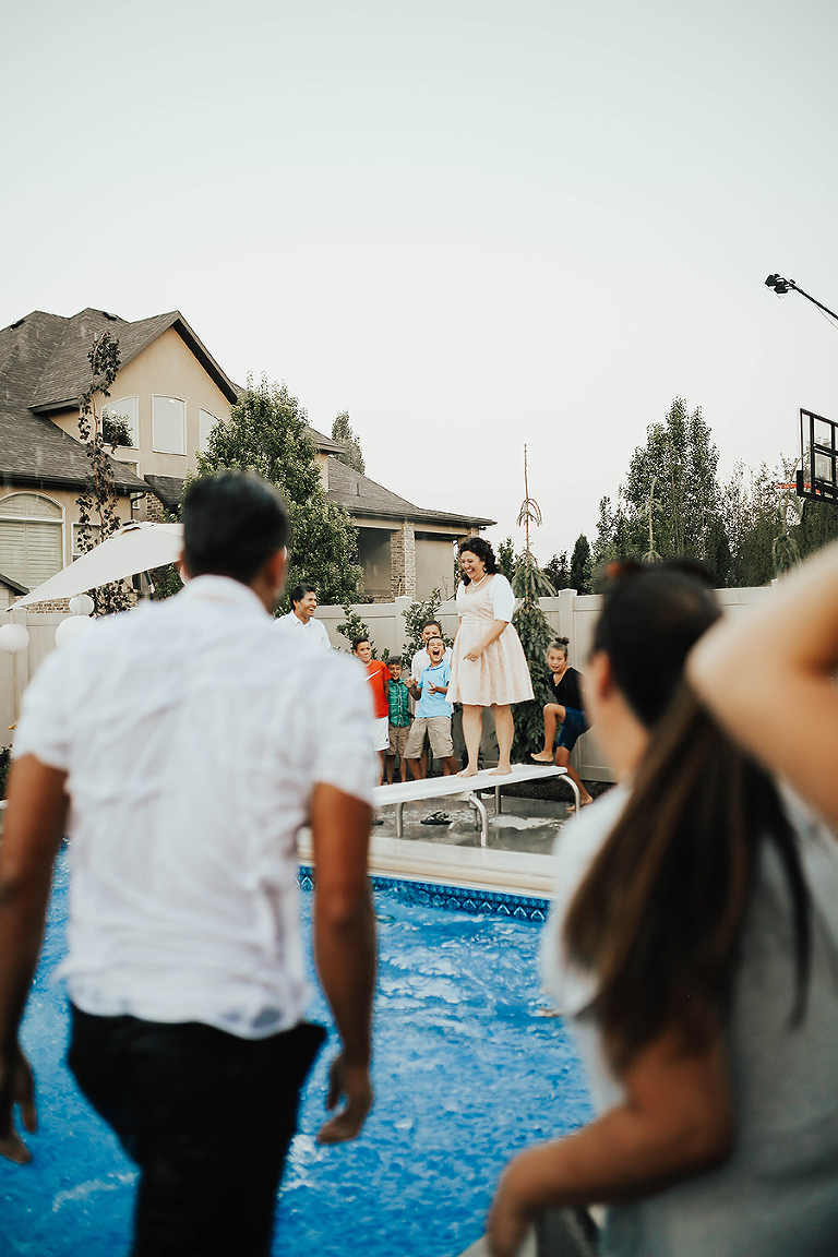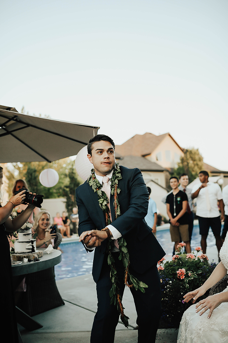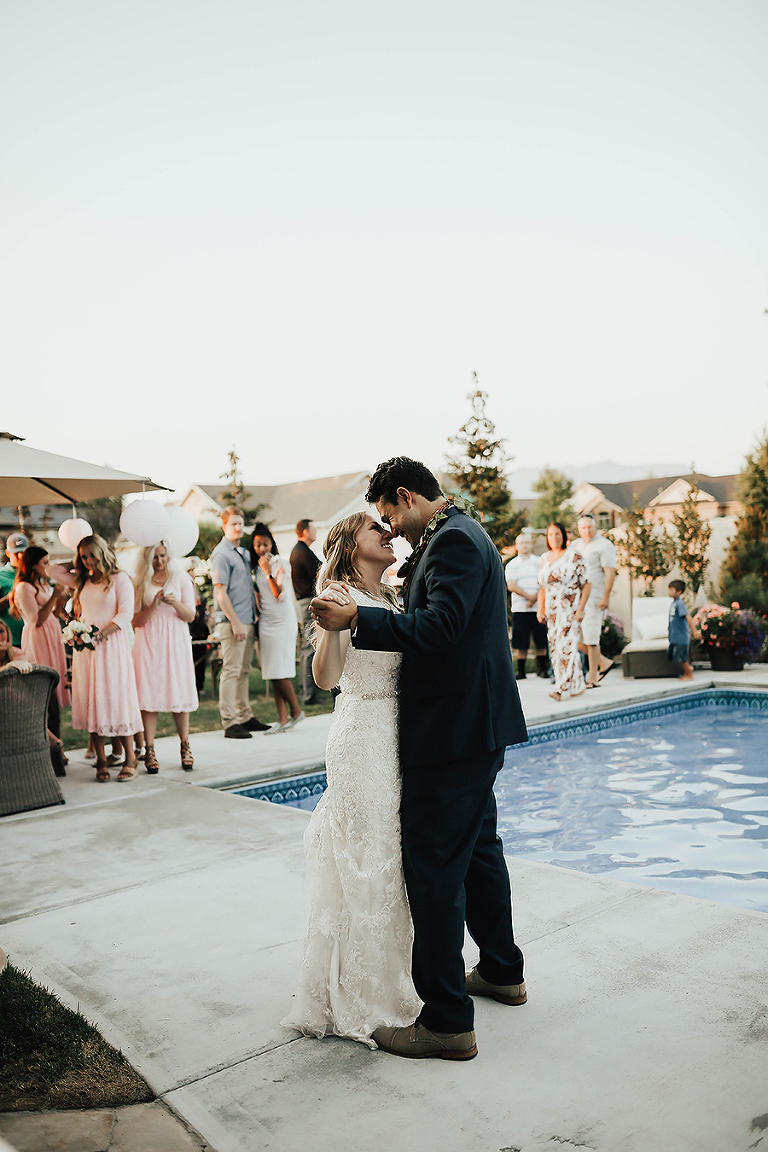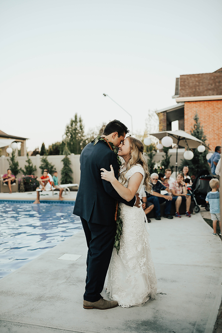 Where do I even begin with this wedding. I think my face hurt from smiling so much this whole day. Matt & Ashley were married at the Ogden, Utah LDS temple and had a beautiful intimate backyard-turned pool PARTAY reception in their hometown of Syracuse, Utah. This was by far the hottest wedding of 2017. It was literally 105 degrees at the temple ceremony and by the time we got to the reception all the groomsmen had changed into board shorts and short sleeve shirts instead of their full suit attire. The whole night you could tell everyone was itching to get the party started and COOL off. Everyone contained themselves for ALMOST the whole night, but once the dance party started everyone people started getting wet. The grooms mom was one of the first to take the plunge. Seriously it was such a fun memorable night. I LOVE being a Utah Wedding Photographer. What a perfect way to start an amazing life together. So happy I could capture it all. Congrats to the Kalamakea’s!! Scroll for ALL the fun..