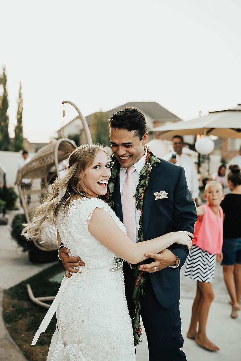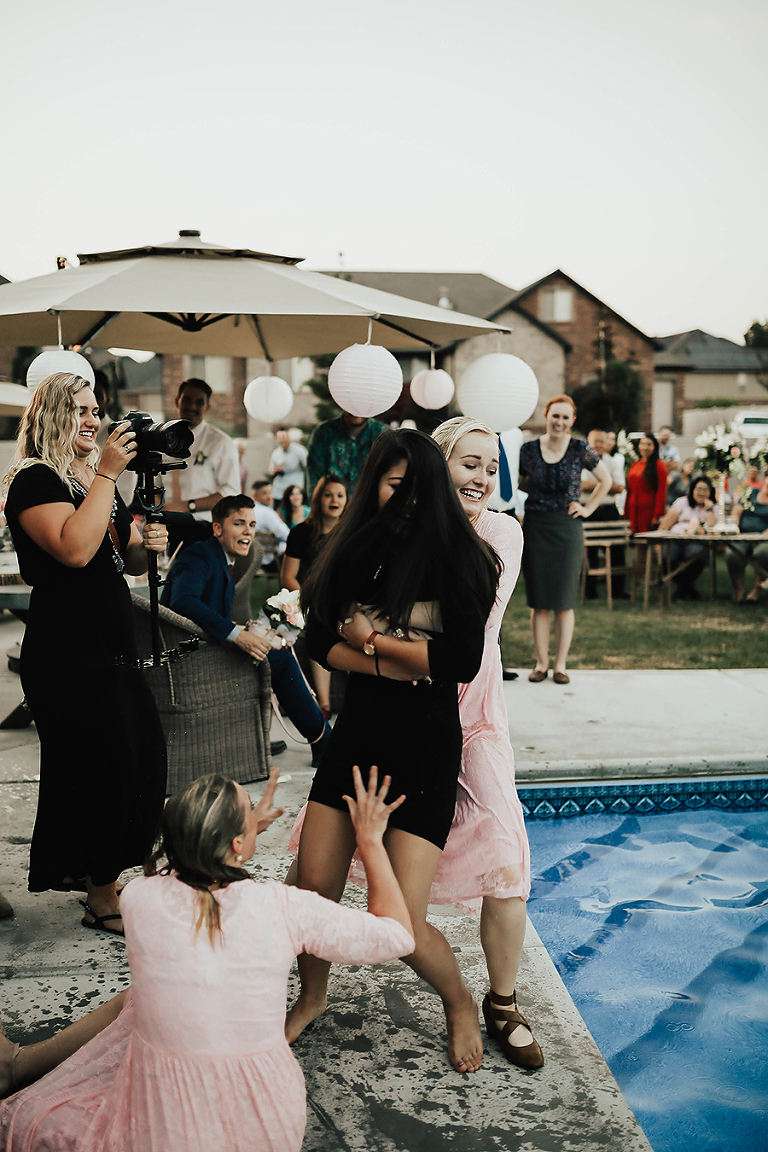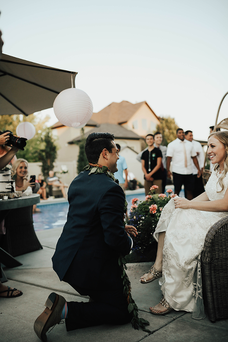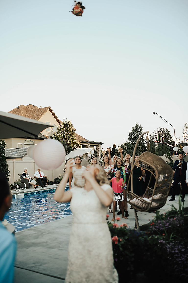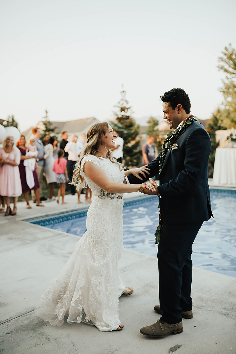Where do I even begin with this wedding. I think my face hurt from smiling so much this whole day. Matt & Ashley were married at the Ogden, Utah LDS temple and had a beautiful intimate backyard-turned pool PARTAY reception in their hometown of Syracuse, Utah. This was by far the hottest wedding of 2017. It was literally 105 degrees at the temple ceremony and by the time we got to the reception all the groomsmen had changed into board shorts and short sleeve shirts instead of their full suit attire. The whole night you could tell everyone was itching to get the party started and COOL off. Everyone contained themselves for ALMOST the whole night, but once the dance party started everyone people started getting wet. The grooms mom was one of the first to take the plunge. Seriously it was such a fun memorable night. I LOVE being a Utah Wedding Photographer. What a perfect way to start an amazing life together. So happy I could capture it all. Congrats to the Kalamakea’s!! Scroll for ALL the fun..